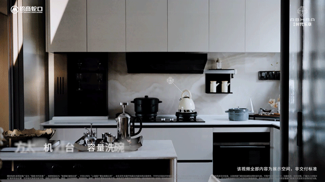 招商时代乐章艺术化的再制保守餐厨空间,可开可合的岛台设想,连系艺术玻璃移门,也激发出餐厨空间糊口的多样性。